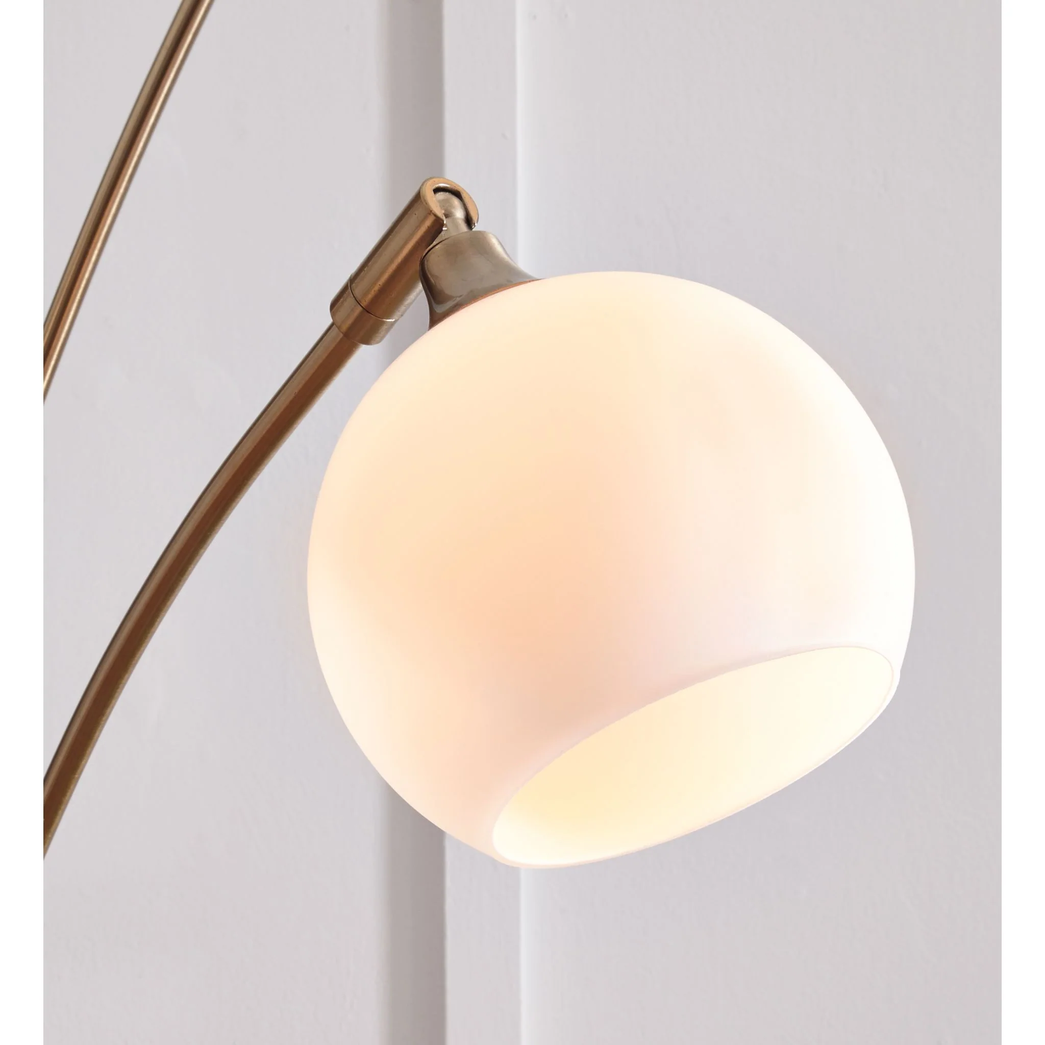 Why settle for ordinary? Feel free to bend the rules with this metal arc floor lamp. Equally sculptural and functional, this striking floor lamp wows with its champagne-tone metal and sturdy white marble construction. Five staggered-height lights with glass globe shades illuminate every which way.